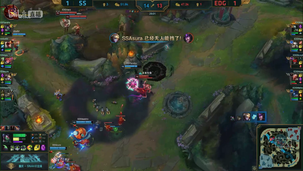 所以和解说说的完全不一样,edg只要杀不掉这个富的流油的ez,怎么爆发都没用。只要团战中有英雄吸引了法师的爆发和控制,接下来的团战蛇队就可以为所欲为。