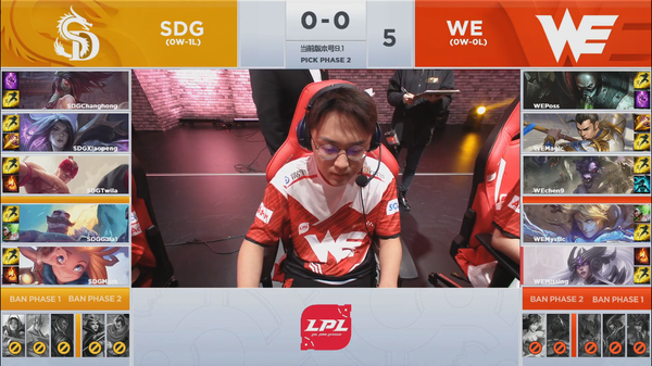 WE和SDG的第一局,可以形容为:WE前期劣势、中期优势、后期均势的比赛。我们分篇讲述WE怎么打的。