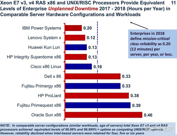 X86服务器不但占据绝大部分,而且可靠性也仅仅比Power 服务器低一点点。