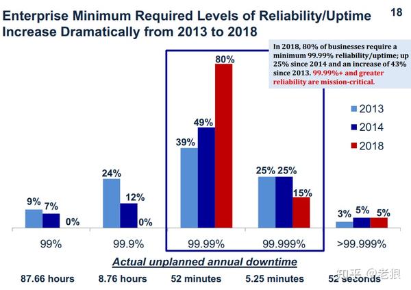 ITIC统计2018年80%的企业最低要求4个9,可靠性要求增长非常迅速: