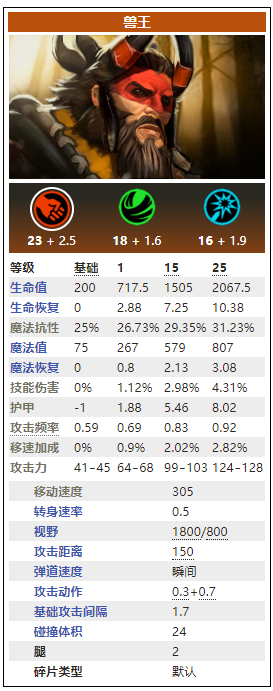 兽王面板很中庸,但好得是个力量英雄,没有那么丢人。