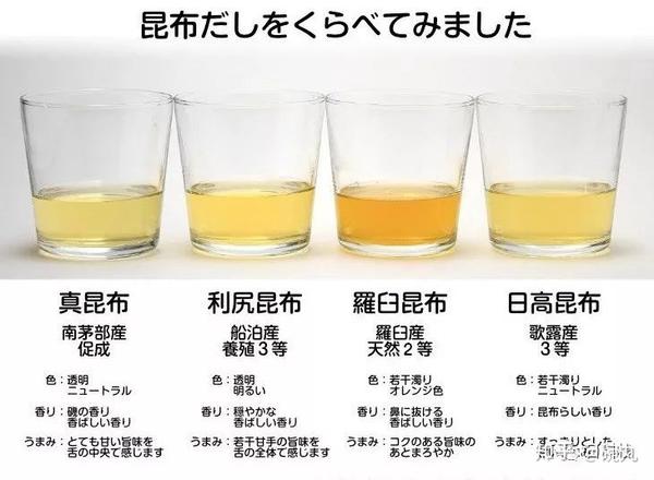 四大昆布制成的昆布高汤颜色比较。via:Amazon