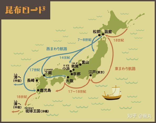 江户时代,昆布和鲱鱼子、鲱鱼干、鲱鱼粕(快乐的鲱鱼三人组!)等来自北海道的其他小伙伴又随着北前船游历日本各地,向西向南一直到达鹿儿岛的萨摩藩,这条航路也被称为昆布之路。其中有一些昆布再经从萨摩藩经由琉球王国(今冲绳)运往中国。