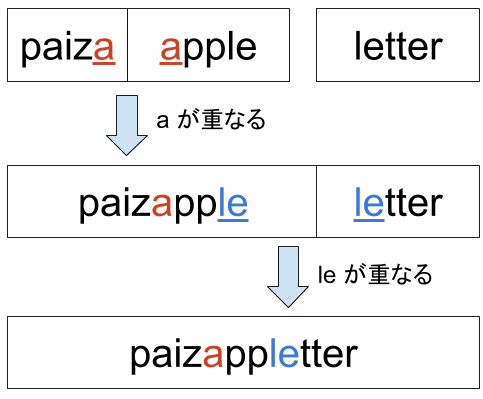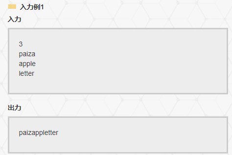 需要注意的是, 这里重复的部分指的是下一个单词跟前面所有单词合并后得到的单词的重复部分...比如输入paiza apple paizappletter, 输出依旧是paizappletter.