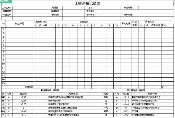 首先先分享一些工时测定细节:在测定之前,需要做好充分的准备,比如需了解与时间测定的产品零件、材料的资料;相关的设备资料、操作方法 SOP 资料、作业环境的资料以及操作者的资料等。进行测定时,我们应将观测位置选择在操作人员的侧后方,以既能清楚地观测操作、便于记录时间,同时又不干扰操作者工作为原则。要与操作人员通力协作,态度上平易近人,不要造成操作人员反感或产生紧张心情。观测时应采取立姿,以示对操作者的尊重,测时期间不要与操作者谈话,以免分心。绝对不能采取秘密测时方式,否则会导致研究人员与操作人员之间的对立,即使一时瞒过操作人员,也决不能得到正确的观测资料。