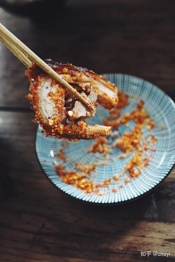 另外呢,也可以比较干香的吃法,用辣椒粉、花椒粉、盐、少许鸡精碾磨成细粉,这样做成的干碟子可以蘸着吃,也是非常香。