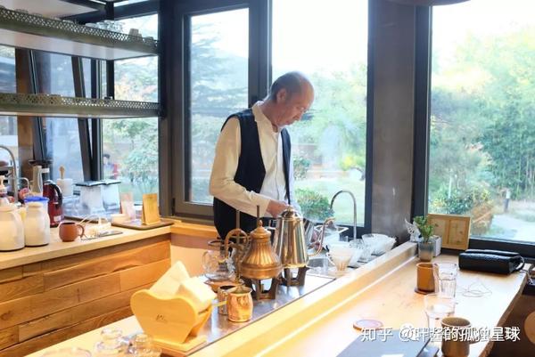 工作日的下午时分,竟然座无虚席,连禅意满满的后院都站着抽根烟、歇会力的客人。手冲咖啡师是年过花甲的老爷子,穿着笔挺的小马甲白衬衫,酷毙了。