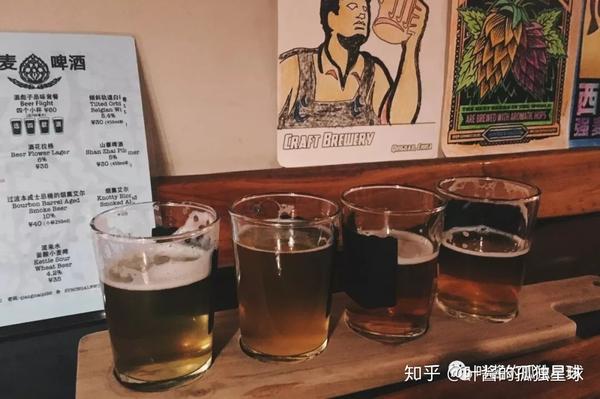 就在华春餐馆附近的小巷子里,有家专门喝精酿的啤酒馆叫"强麦",60块钱的套餐,可以任选四种精酿组合。