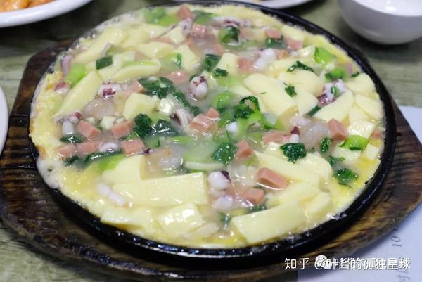 白菜大虾是白菜比虾好吃,吸饱了红油油的虾膏虾汁;铁锅蛋豆腐,豆腐比里面的鱿鱼和蛋好吃;