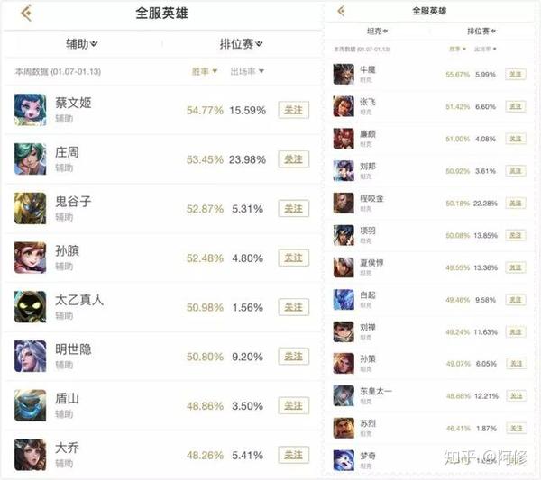 本期主要分享一下上周排位赛胜率变动比较大的英雄。