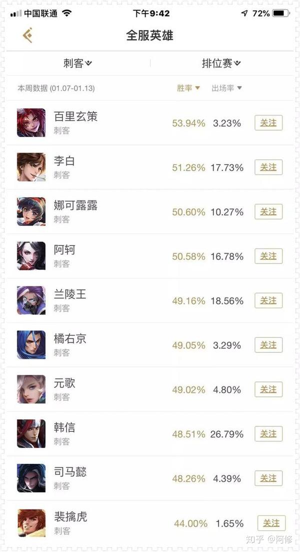 刺客这里的话,其实胜率我个人觉得可以看看,但是也不要一直以这个胜率排行榜来选择打野英雄。